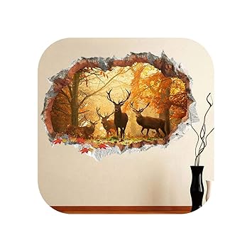 Amazon Com Kitchen Oil Proof Wall Sticker Forest Deer 3d Wall
