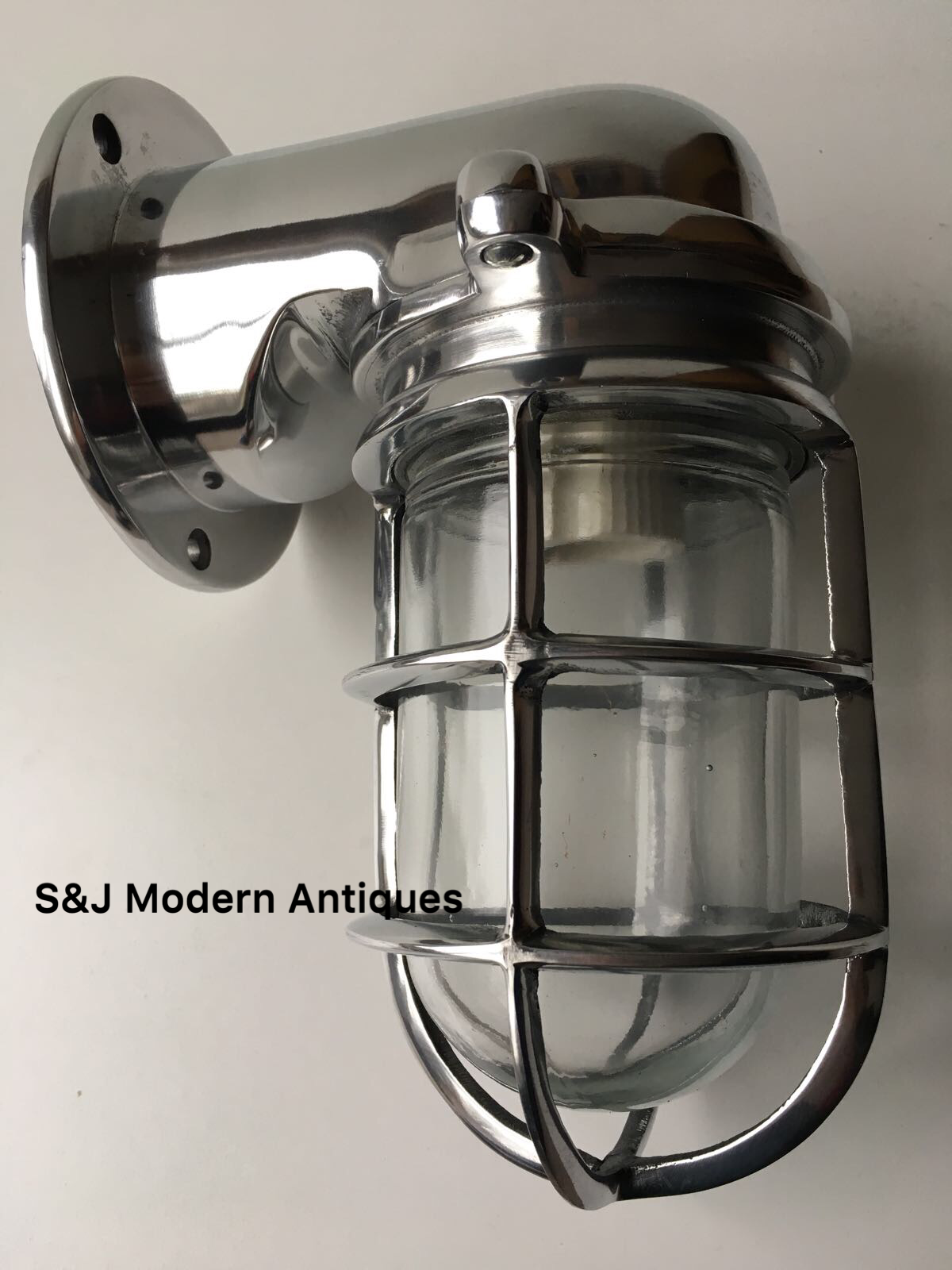 Vintage Industrial Wall Light Silver Aluminium Bulkhead Marine