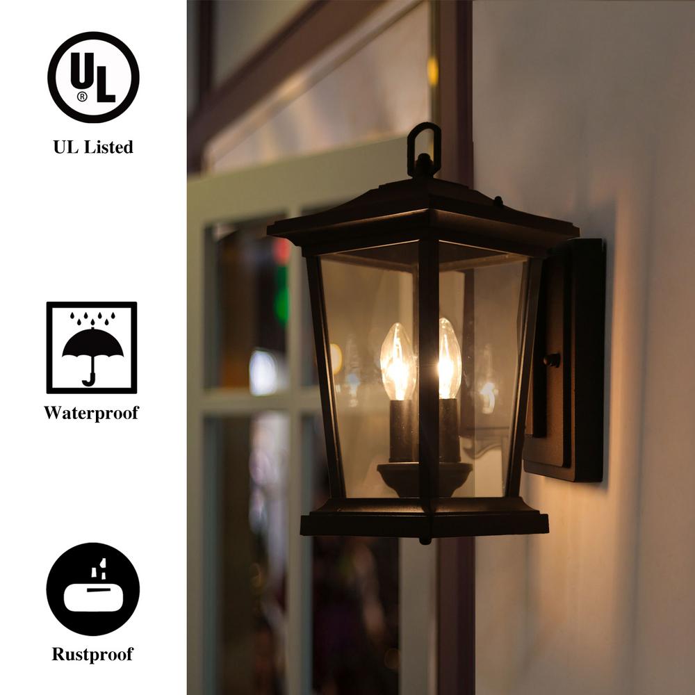 Lnc 2 Light Candle Style Black Outdoor Wall Lantern Sconce With