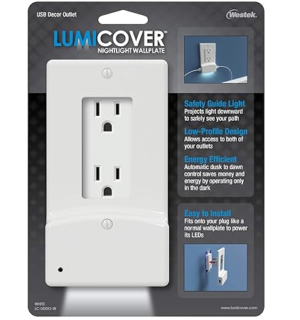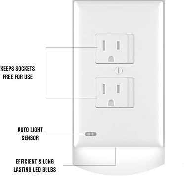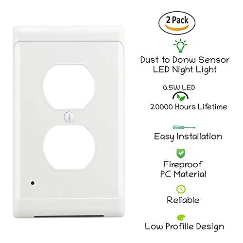 Duplex 2pack Led Night Light Outlet Cover Plate No Wires Or