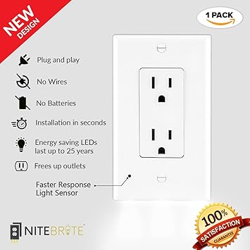 Nitebrite Outlet Wall Plate With Led Night Lights Installs In