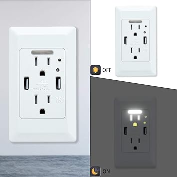Duplex Wall Outlet Cover Wall Plate With Led Night Lights Ambient