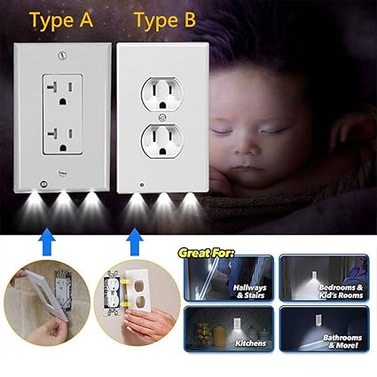 Led Wall Outlet Plate Cover With Led Night Lights And Auto Sensor