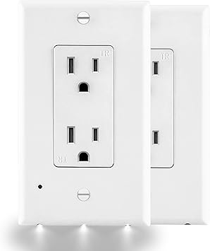 2 Pack Electeck Wall Outlet Cover Plate With Led Sensor Night