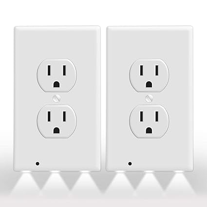 Duplex White Outlet Wall Plate With Led Night Lights Installs In