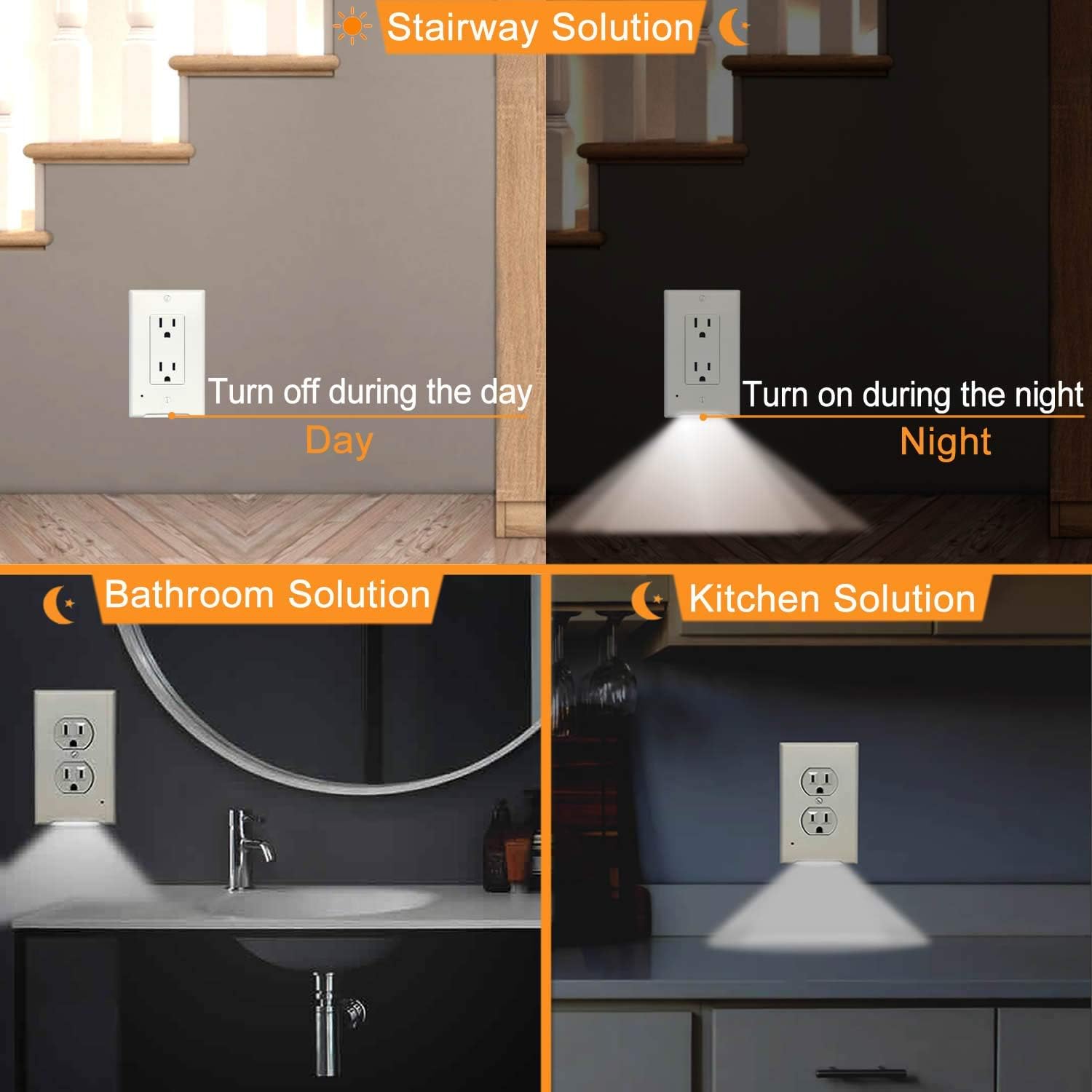 Outlet Wall Plate With Led Night Lights No Batteries Or Wires Wowelo