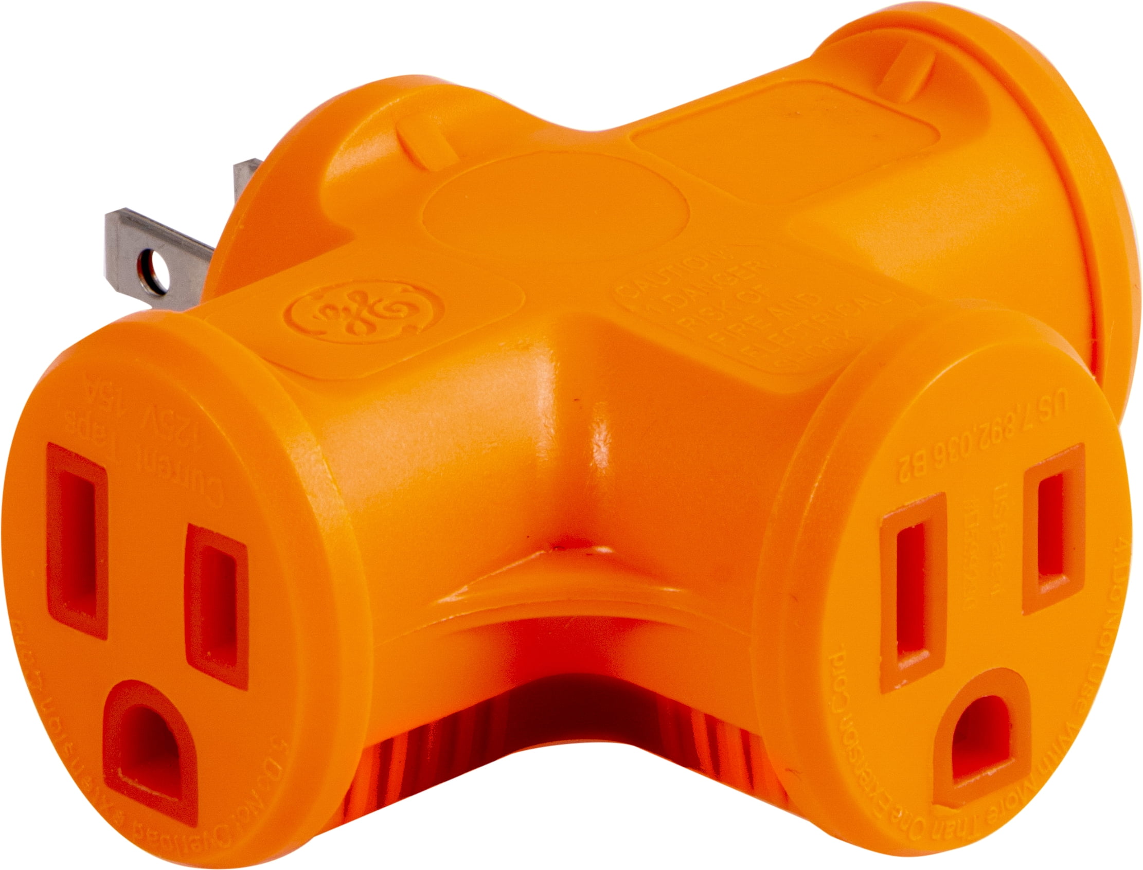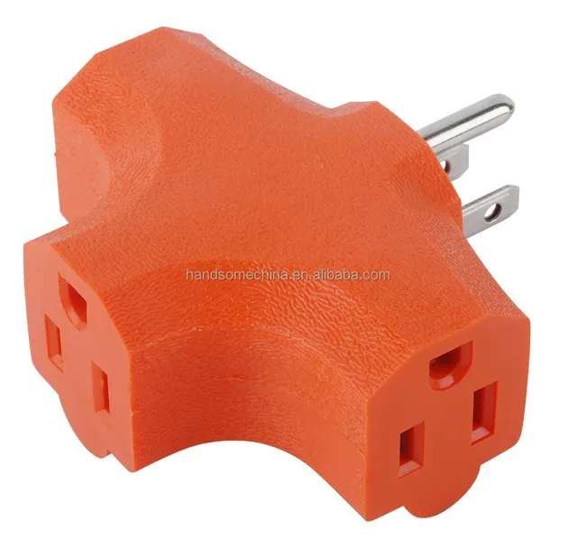 3 Way Outlet Wall Plug Adapter T Shaped Wall Tap 3 Prong Orange