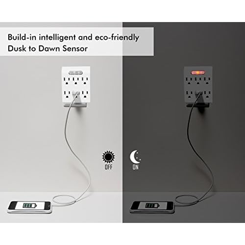 6 Grounded Wall Outlet Tap Wall Plug Adapter With Sensor Night