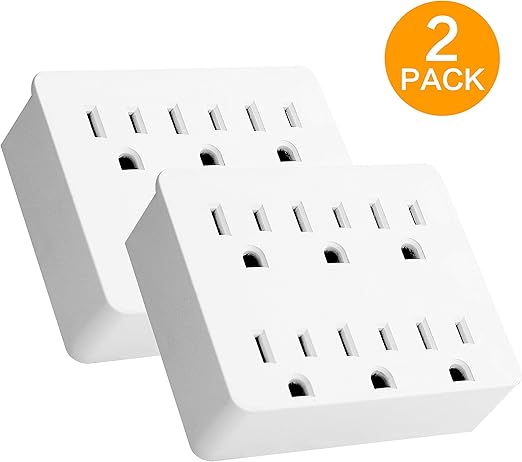 2 Pack Grounded 6 Outlet Wall Tap With Adapter Spaced Outlets Easy