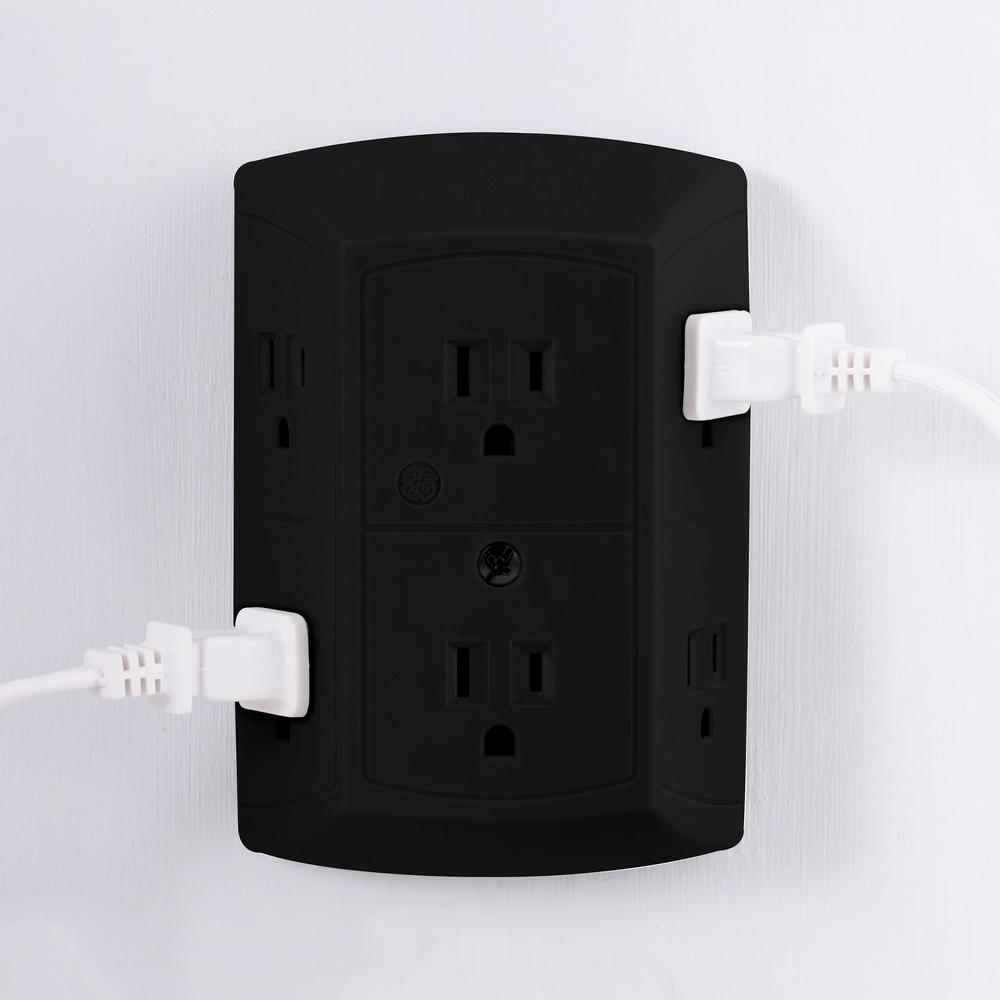 Ge Grounded 6 Outlet Wall Tap Adapter Spaced Black 45201 The