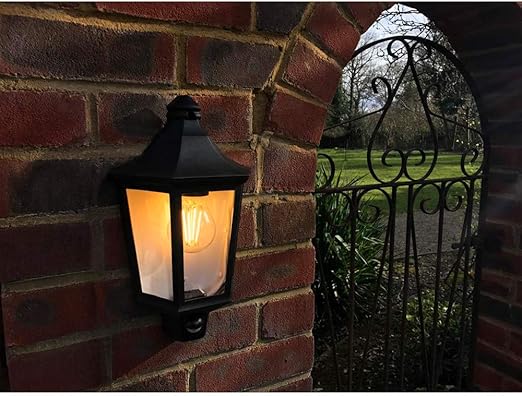 Lighthub Ip44 Led Half Lantern Outdoor Exterior Outside Garden Wall Mount Security Modern With Pir Motion Sensor Porch Light Black Amazon Co Uk Lighting