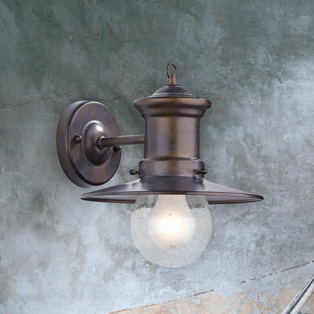 Rustic Outdoor Wall Lantern In Bronze With Seeded Glass Shade