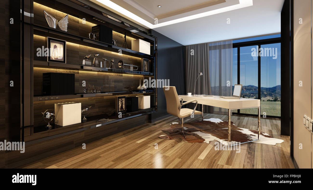 Upmarket Home Office With A Modern Desk With A Panoramic View