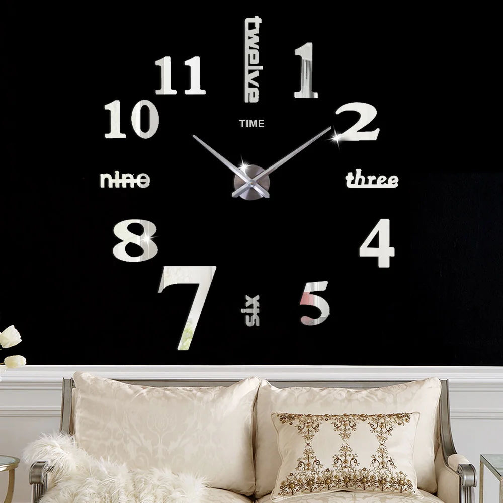 Self Adhesive Large Wall Clock Silent Decorative Time 3d Diy