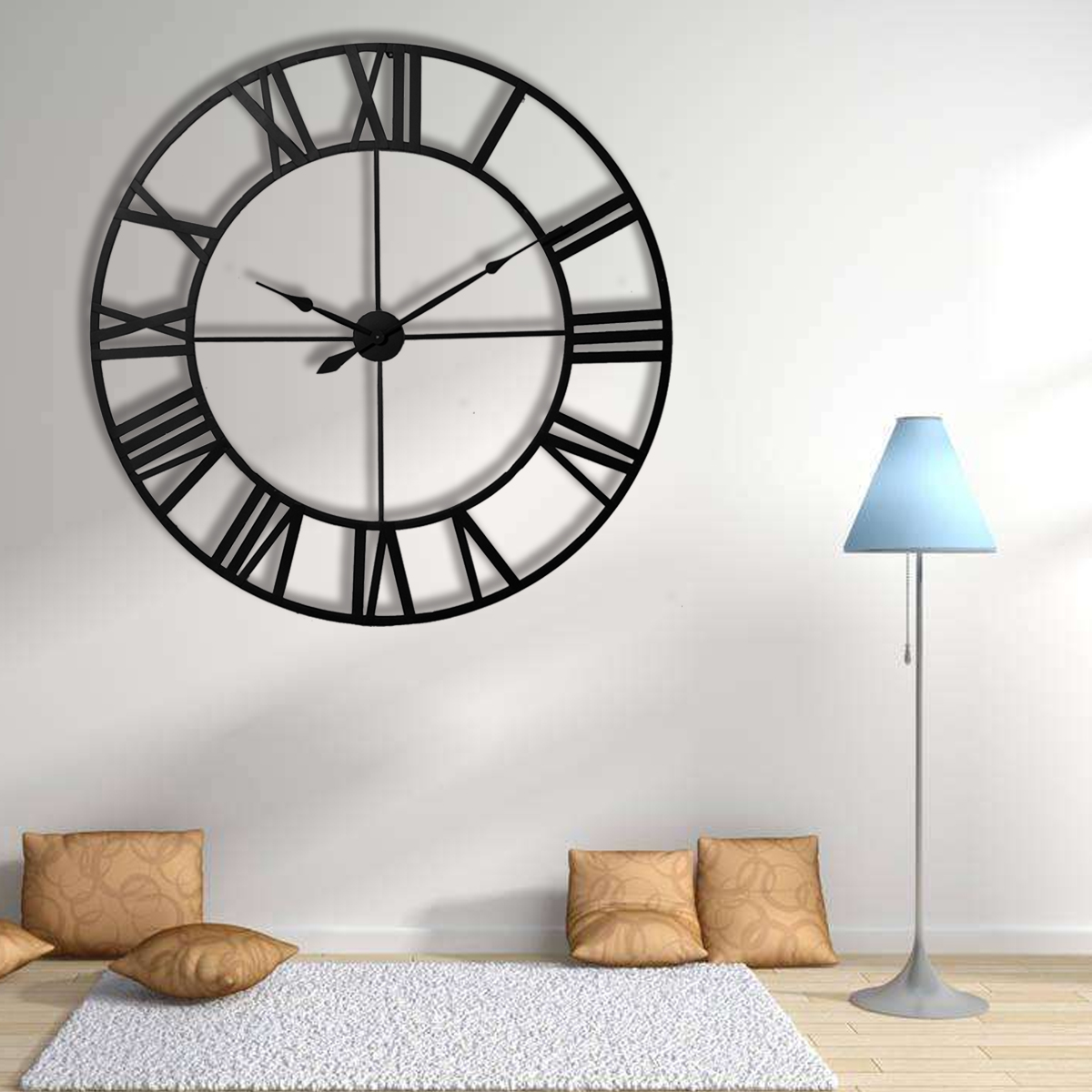 Oversized Metal Wall Clock Large Decor Round Vintage Modern