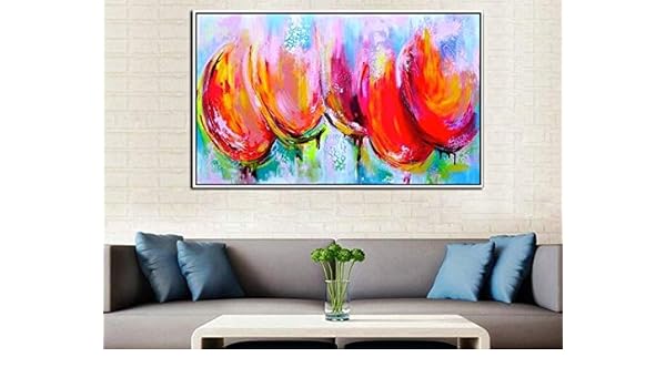 Ipaintings Five Tulips Handmade Hand Painted Modern Abstract Oil