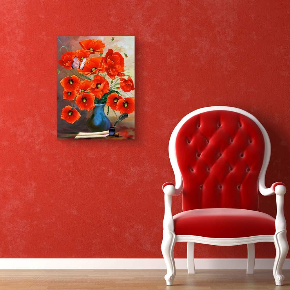 Modern Abstract Knife Red Floral Paintings Handmade Home