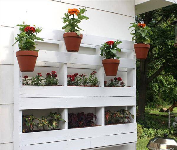 Recycled Pallet Vertical Garden With Pots 101 Pallets