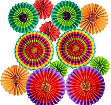 12pcs Hanging Fiesta Paper Fan Lanterns Decoration Mexican Fiesta
