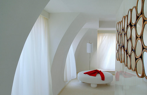 Round White Ottoman In Elegant Room Buy Image 12674624