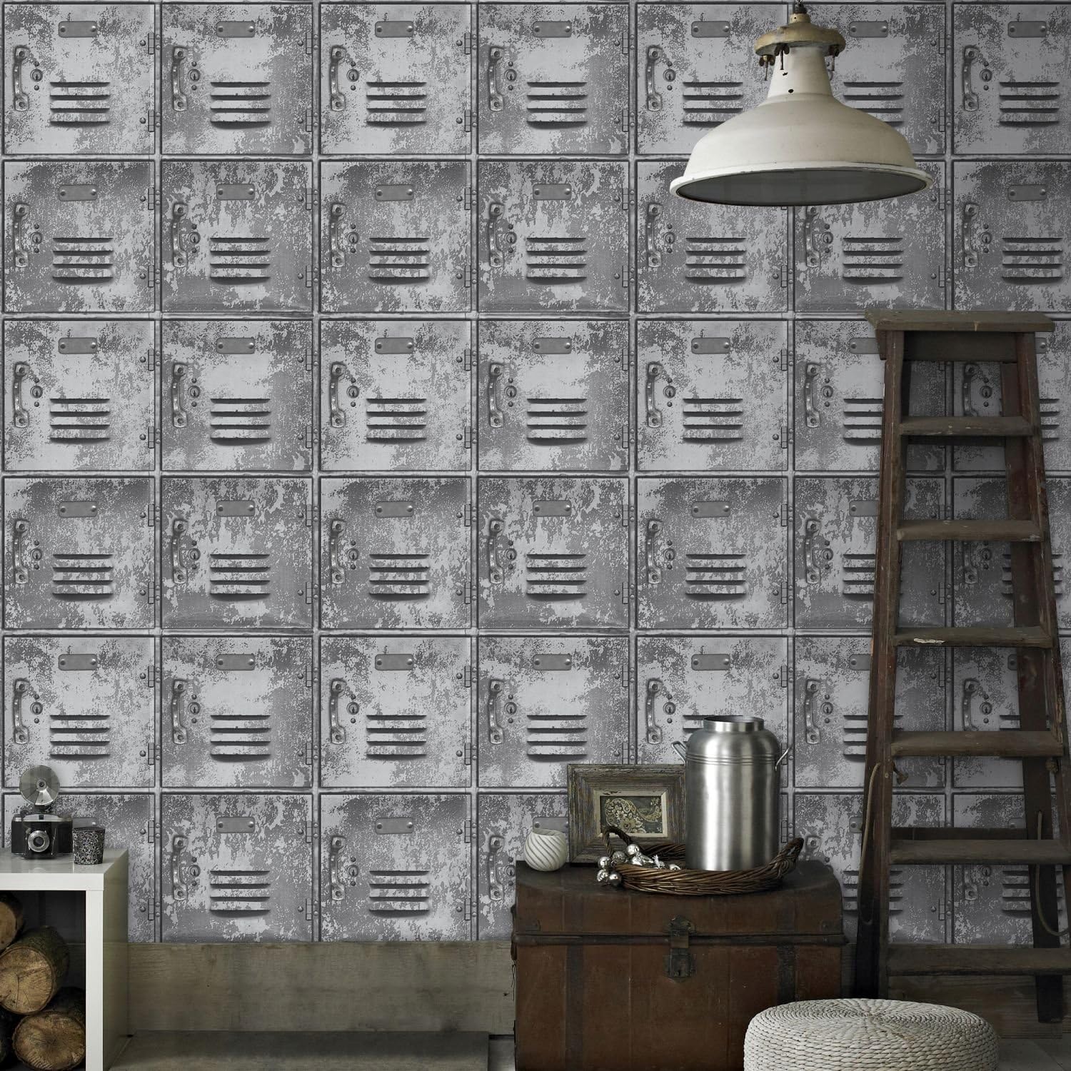 Superfresco Easy Paste The Wall Locker Metal Look Grey Wallpaper
