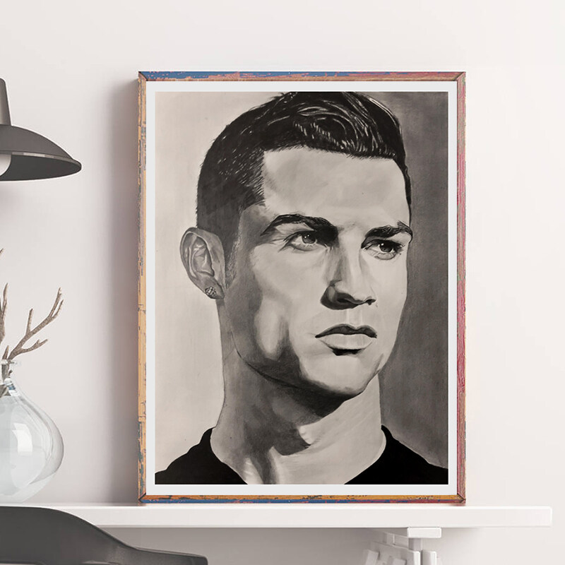 Cristiano Ronaldo Pencil Drawing Portrait Sketch Poster Canvas