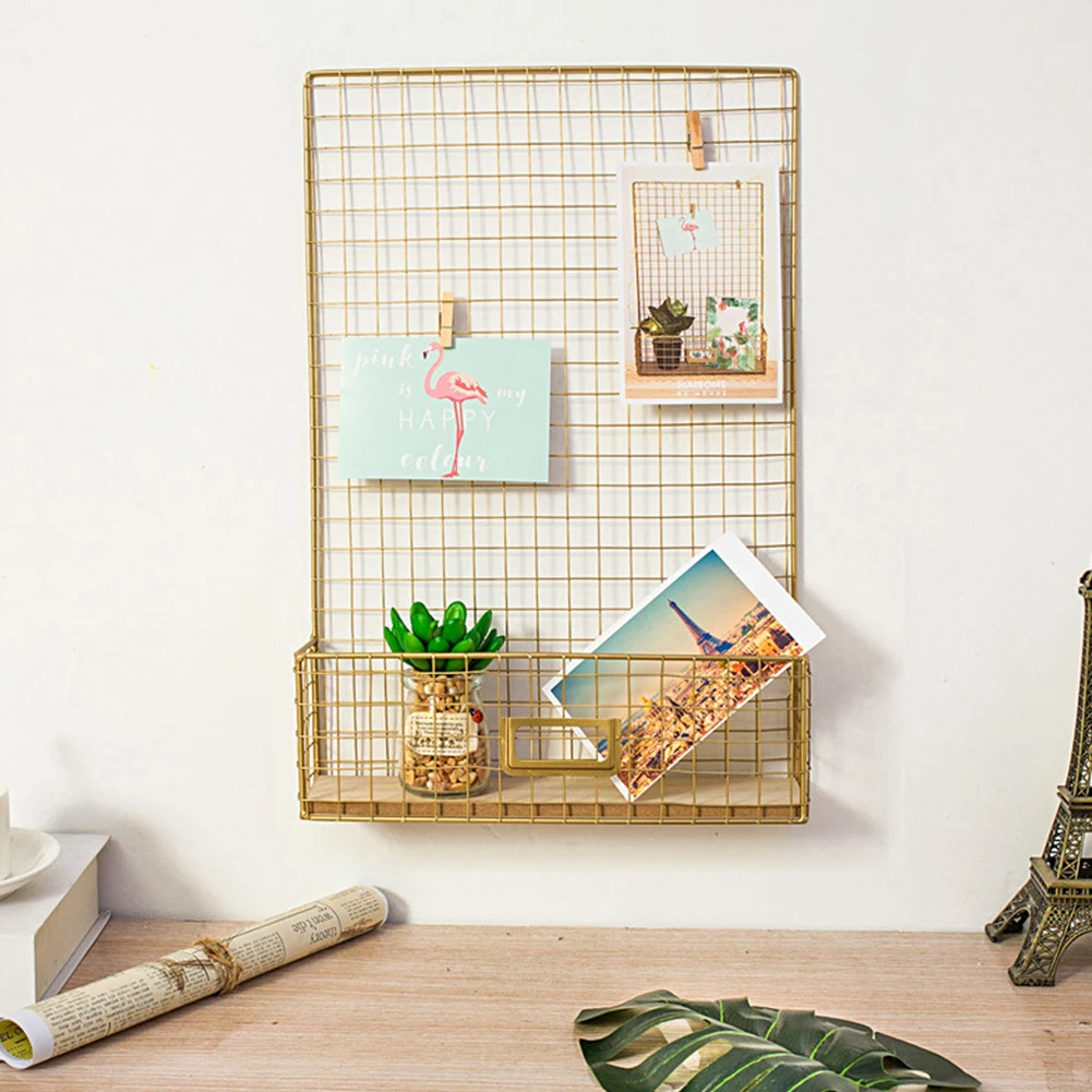 Iron Grid Photo Display Wall Decor Office Home Storage Shelf