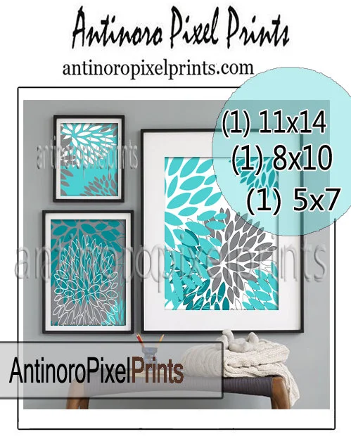 Collage Aqua Teal Grey Floral Art Wall Gallery Digital Print