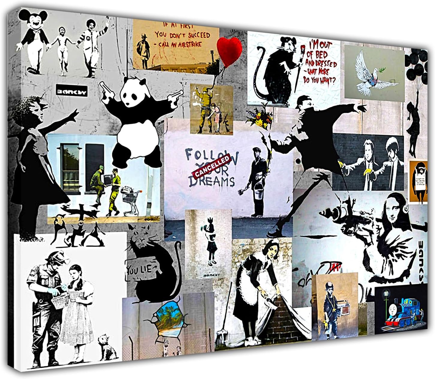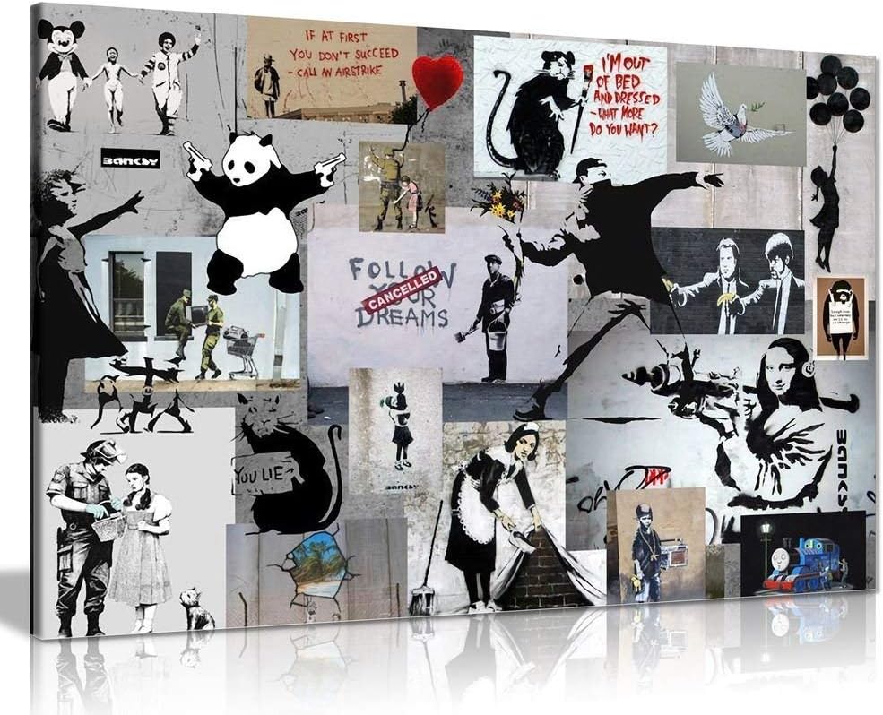 Large Banksy Print Canvas Collage Prints Mix Graffiti Best Of