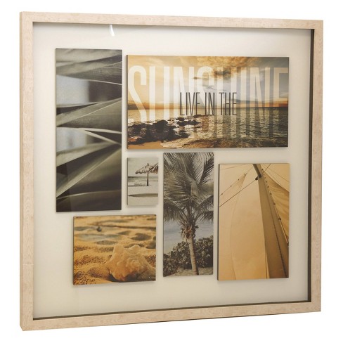 29 7 Coastal Print Collage Light Wood Framed Decorative Wall Art