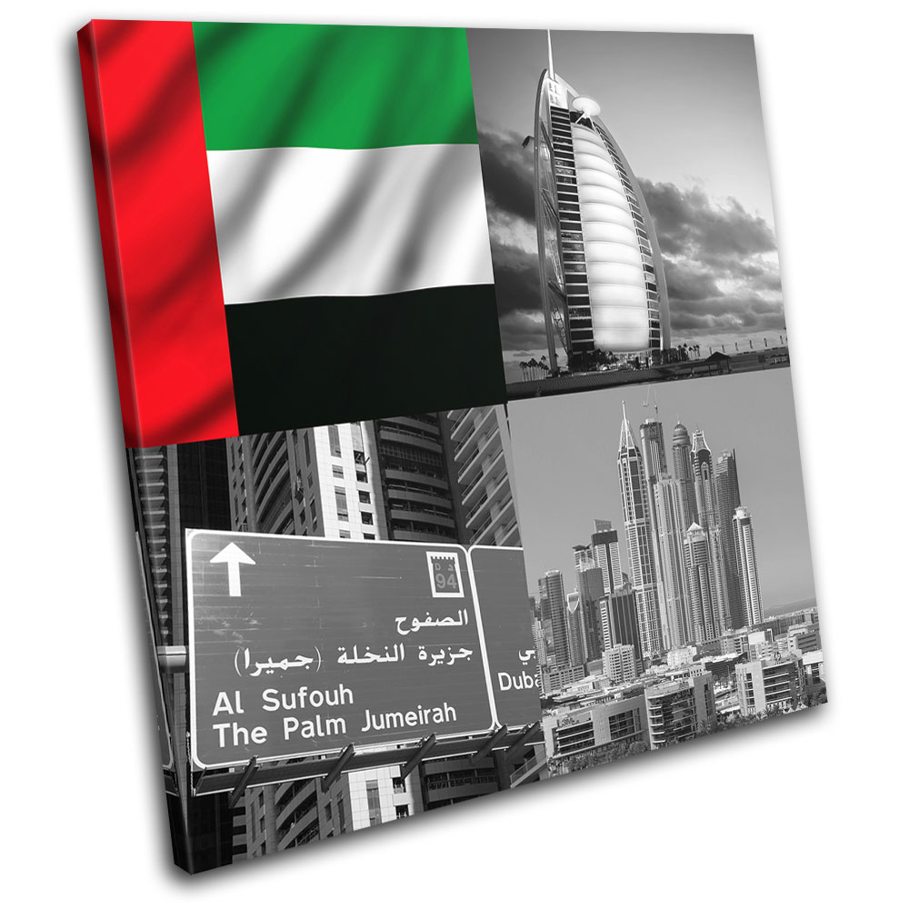 Dubai Collage City Landscapes Flag Urban Single Canvas Wall Art