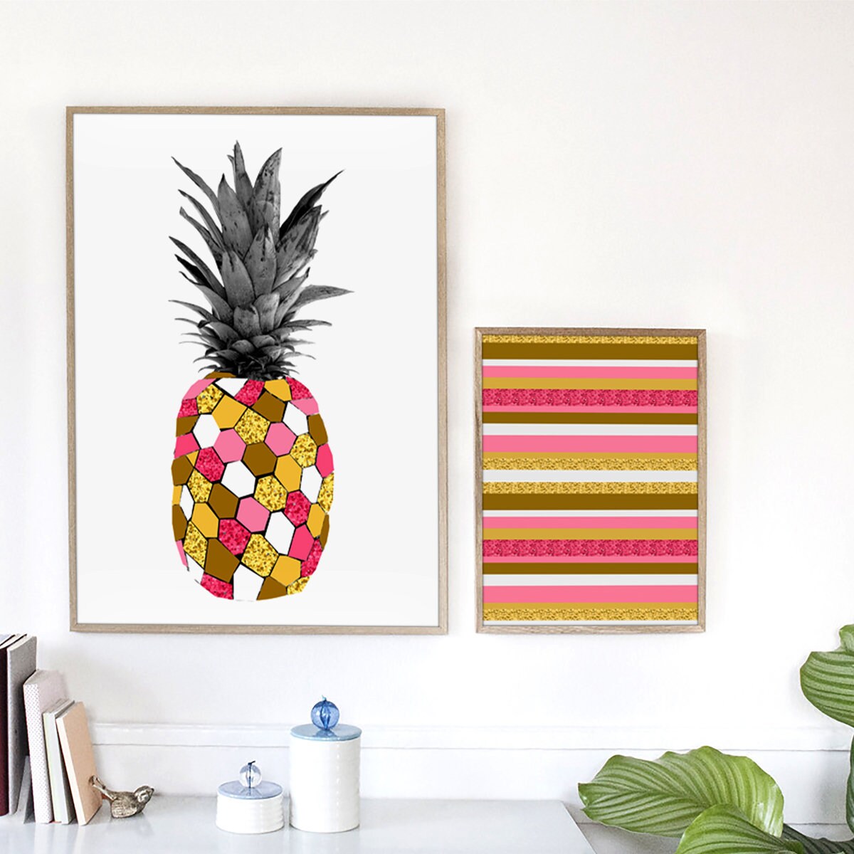 Pink Pineapple Printable Decor Pink Gold Wall Art Arrangement Etsy