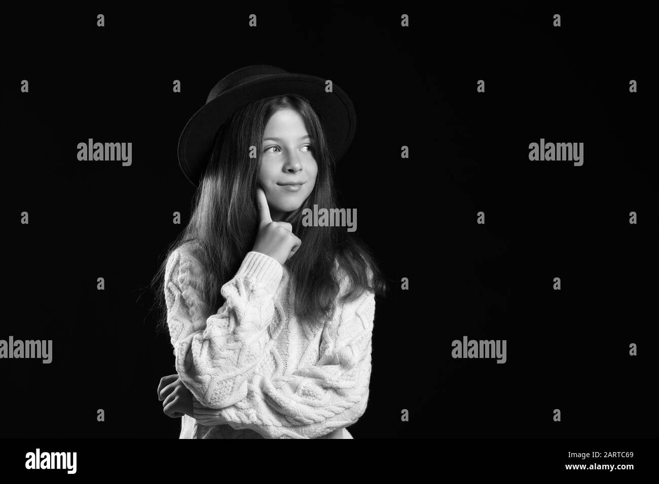 Cute Teen Girl On A Black Background Stock Photo Picture And