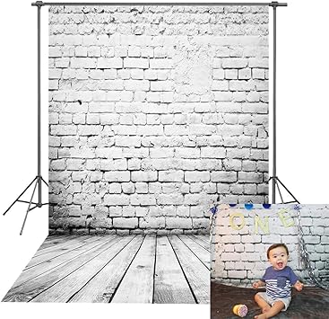 Aofoto 5x7ft White Brick Wall Photography Background Old Wooden