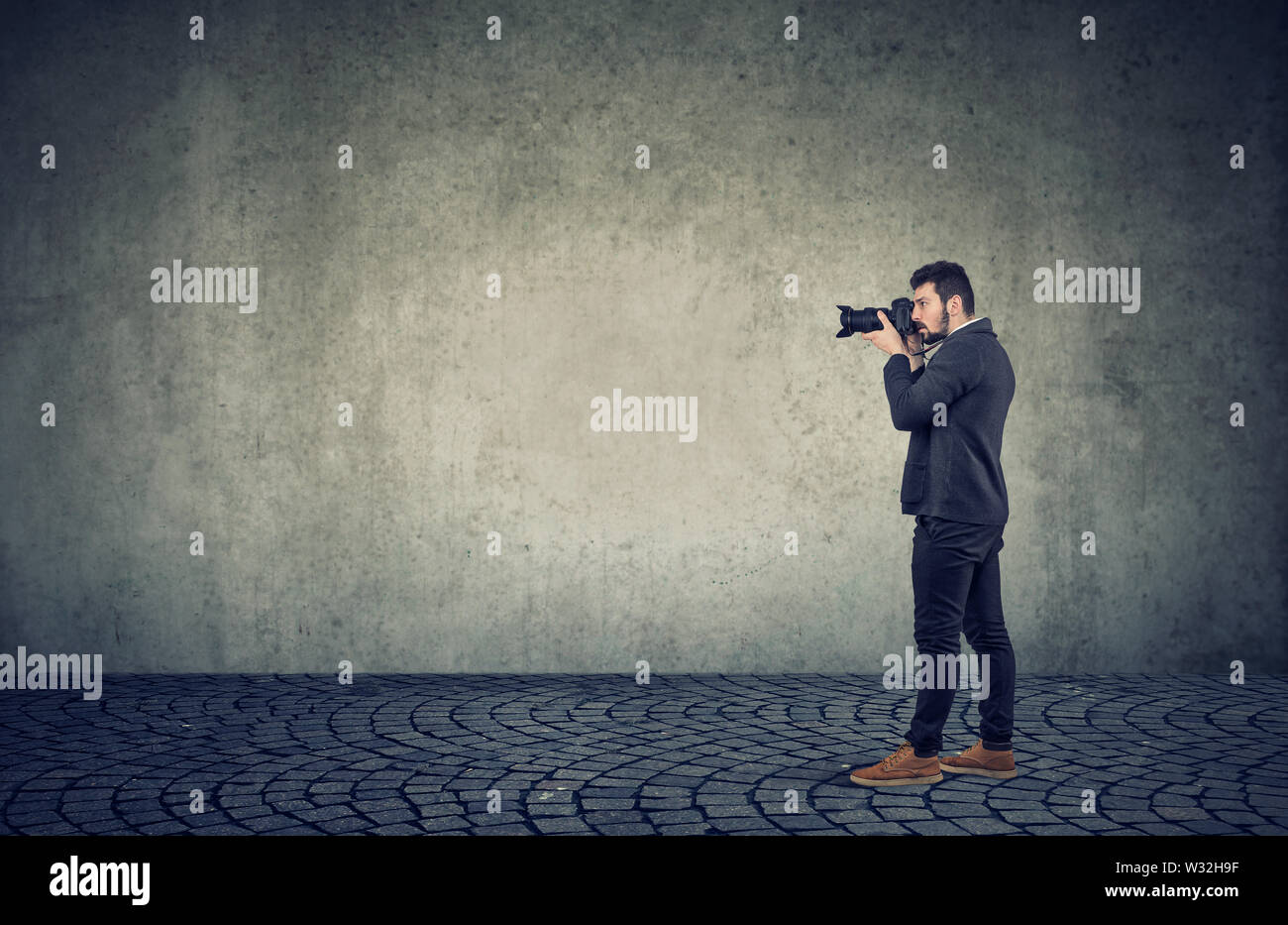 Portrait Of A Photograph Using A Professional Camera Standing On A