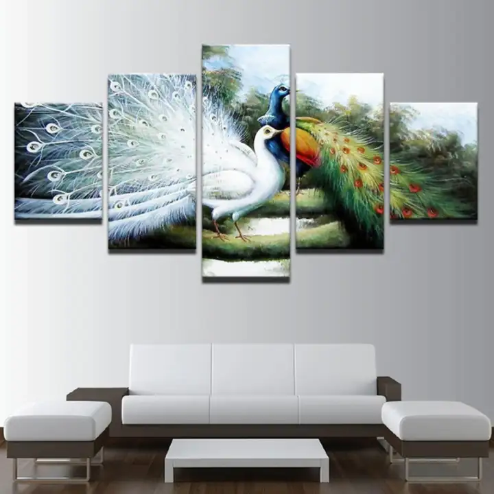 5 Pieces Canvas Painting Modern Home Decoration Peacock Animal Oil