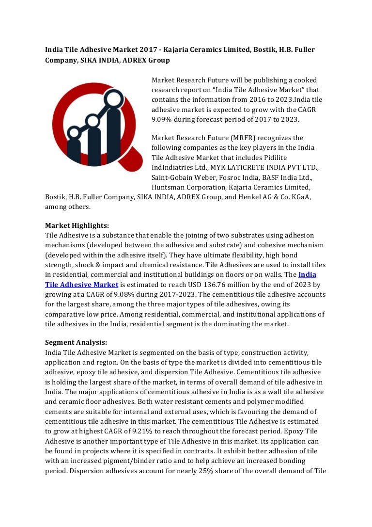 India Tile Adhesive Market 2017 Trends Key Vendors Analysis Import