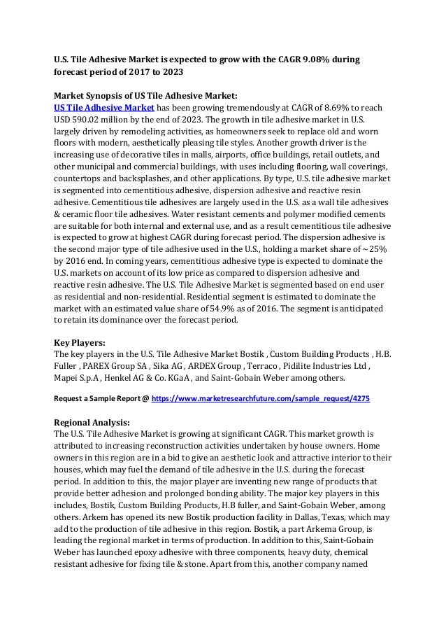 U S Tile Adhesive Market 2017 Size Competitors Strategy Regional