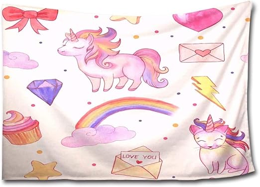 Kisy Pink Unicorn Tapestry Wall Hanging Cute Rainbow Ice Cream