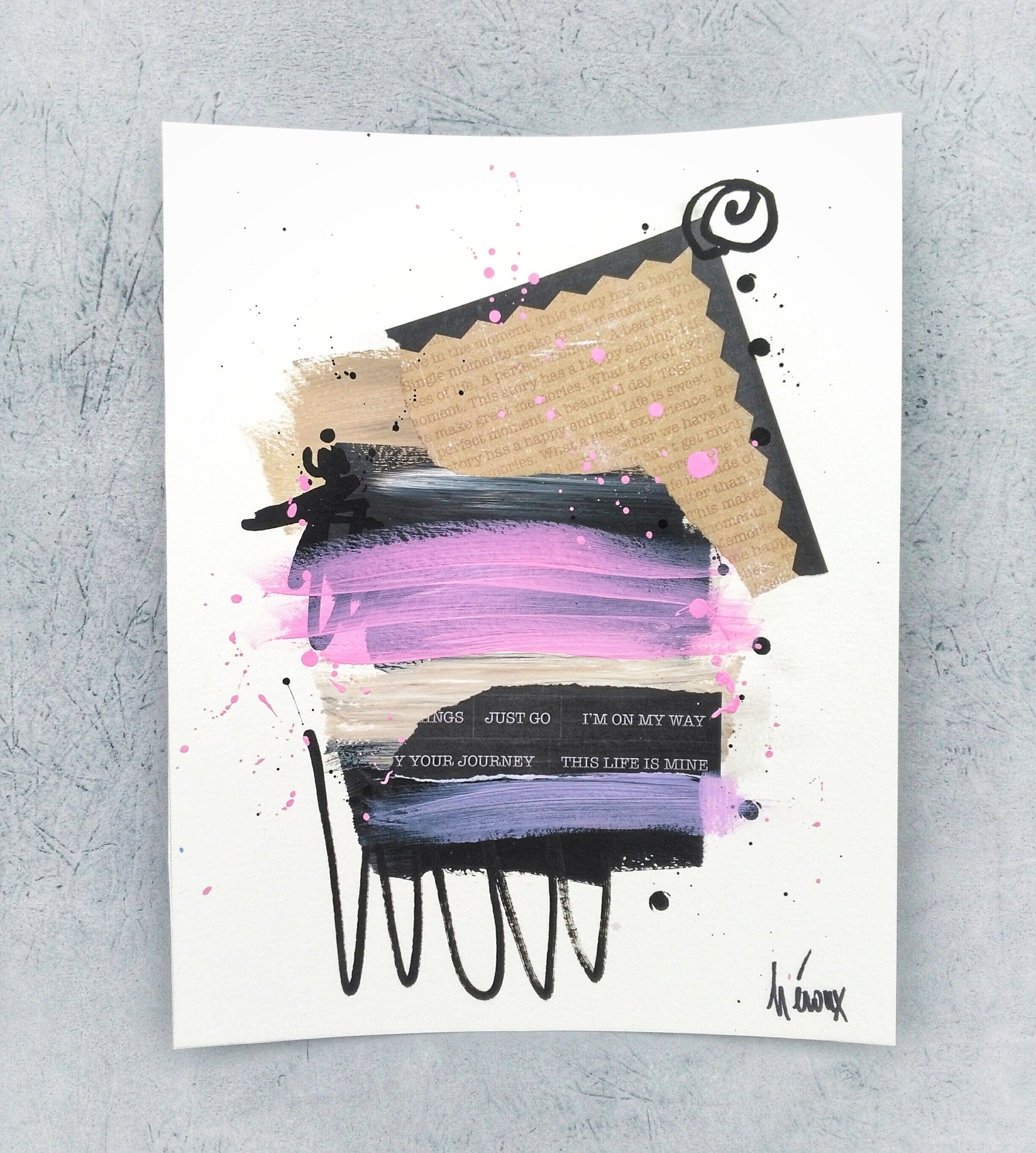 Collage Art On Paper Mixed Media Collage Wall Decor In Pink Etsy