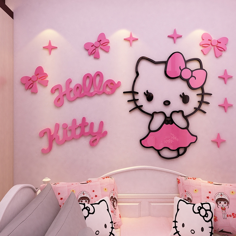 Ready Stock Kt Cat Stickers Children S Room Decorative Wall Stickers 3d Girls Bedroom Bedside Wall Stickers Princess Room Layout Shopee Indonesia