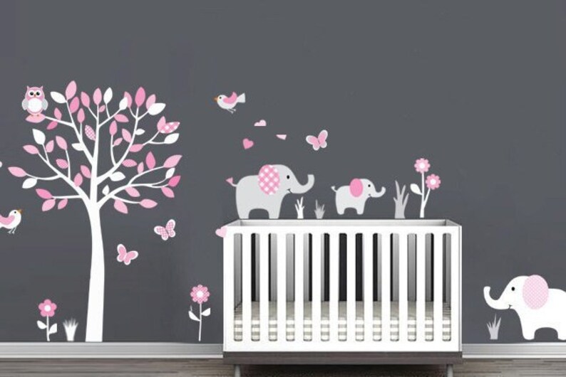 Children Wall Decal White Pink Girls Nursery Vinyl Wall Stickers Flowers Owls Curl Tree 99 99 Via Etsy Baby Girl Room Girl Nursery Pink Girl Room