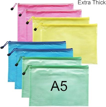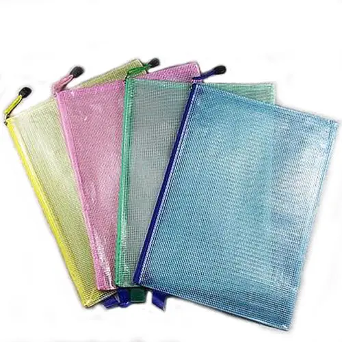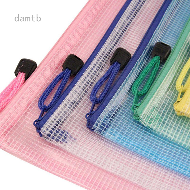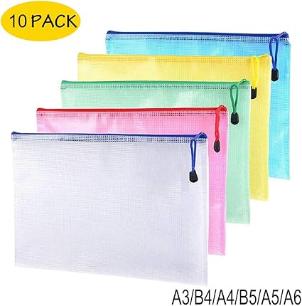 10 Pack Duralble Plastic Zipper File Wallet Mesh Document Bag