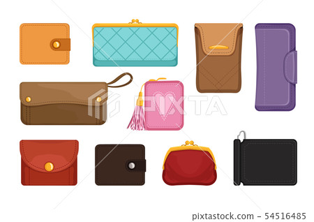 Flat Vectoe Set Of Stylish Wallets Stock Illustration