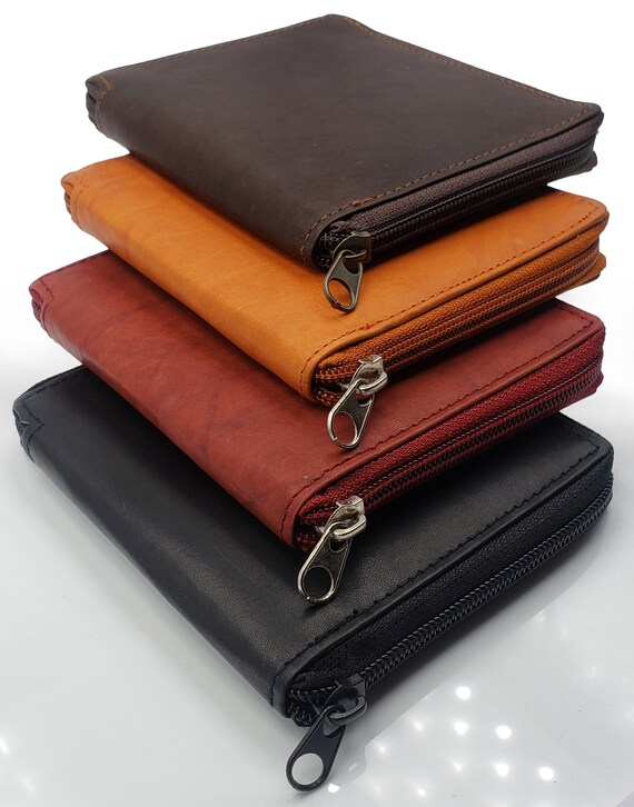 Ag Wallets Mens Zip Around Bifold Wallet Cowhide Leather Etsy