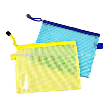 Colored Pvc Mesh Document Wallets W Plastic String Lock Braided