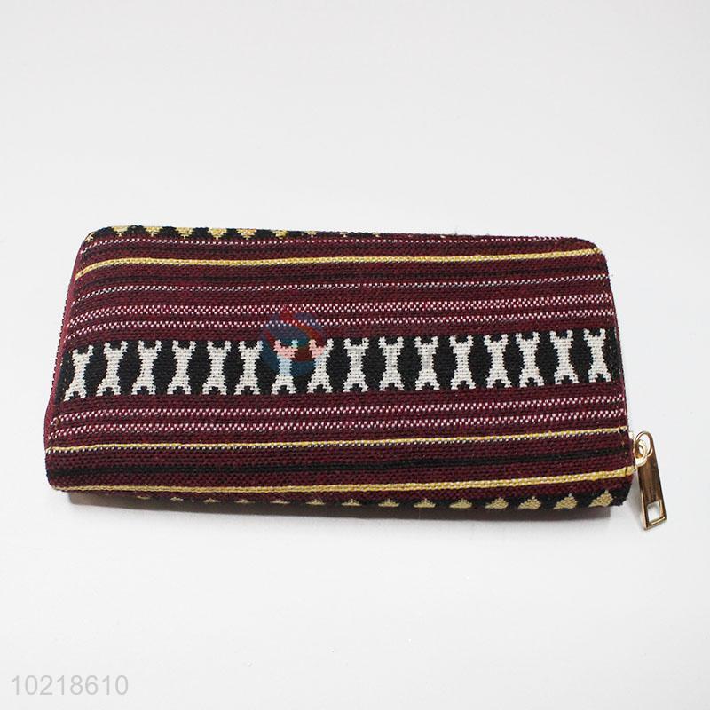 Fancy Gift Printed Women Purse Canvas Wallet With Plastic Zipper