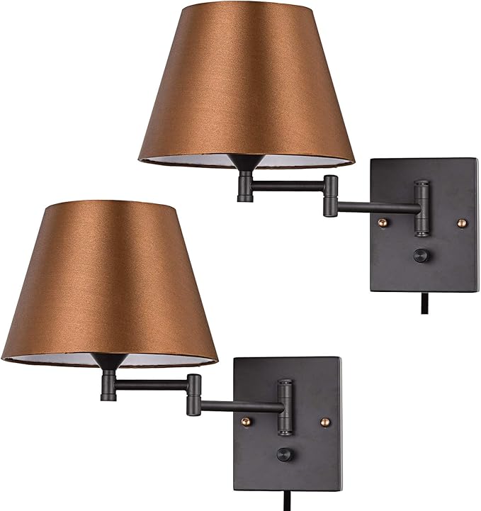 Swing Arm Wall Lights Plug In Set Of 2 Lamps French Bronze For