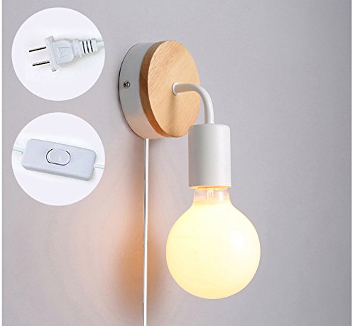 Modern Wire Plug Wood Iron Wall Sconces E27 Led Wall Lights For
